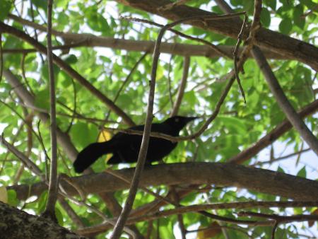 Ces oiseaux, une sorte de merles, se promenaient partout à la Martinique. Peu farouches, ils n'hésitaient pas à entrer dans le restaurant pour partager notre petit déjeuner.